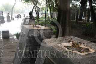 CIUDAD DE MÉXICO, 31AGOSTO2024.- En la Plaza de los Compositores, ubicada en la colonia Hipódromo Condesa de la Ciudad de México, siete de los 17 bustos de renombrados compositores mexicanos han desaparecido. Este espacio cultural, inaugurado en 2007, fue creado por la Sociedad de Autores y Compositores de México (SACM) para rendir homenaje a figuras icónicas como Consuelito Velázquez, Manuel Esperón, Gonzalo Curiel, Rocardo López Méndez y José Alfredo Jiménez. A pesar de su importancia, la plaza está descuidada. FOTO: GUSTAVO TORRES/CUARTOSCURO.COM
