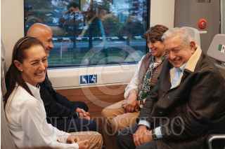 CIUDAD DE MÉXICO, 31AGOSTO2024.- Andrés Manuel López Obrador, presidente de México, acompañado de Claudia Sheinbaum Pardo, presidenta electa de México, encabezaron la inauguración del Tren Insurgente en la estación Santa Fe. El nuevo sistema de transporte conectará al estado de México con la zona poniente de la capital. FOTO: PRESIDENCIA/CUARTOSCURO.COM