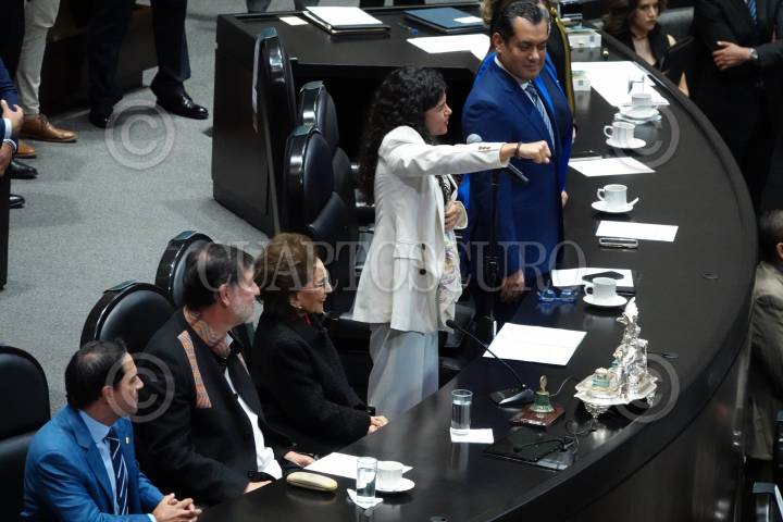 CIUDAD DE MÉXICO, 01SEPTIEMBRE2024.- Luisa María Alcalde, secretaria de Gobernación, hizo entrega del 6to Informe del presidente Andrés Manuel López Obrador a la Mesa Directiva de la Cámara de Diputados que encabeza la diputada morenita, Ifigenia Martínez, así como a Gerardo Fernández Noroña, presidente de la Cámara de Senadores, y Sergio Gutiérrez Luna, vicepresidente de la Mesa Directiva de Diputados. FOTO: GALO CAÑAS/CUARTOSCURO.COM