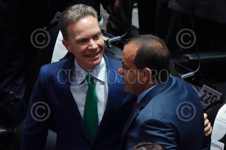 CIUDAD DE MÉXICO, 01SEPTIEMBRE2024.- Manuel Velasco, coordinador del PVEM en el senado, y Cuauhtémoc Blanco, diputado morenista y exgobernador de Morelos, previo a la sesión en que fue entregado el 6to Informe de gobierno del presidente Andrés Manuel López Obrador, así como la instalación de la LXVI Legislatura. FOTO: GALO CAÑAS/CUARTOSCURO.COM