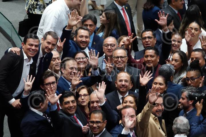 CIUDAD DE MÉXICO, 01SEPTIEMBRE2024.- un fragmento de la bancada morenista, que posee la mayoría calificada en la Cámara de Diputados, previo a la sesión en que fue entregado el 6to Informe de gobierno del presidente Andrés Manuel López Obrador, así como la instalación de la LXVI Legislatura. FOTO: GALO CAÑAS/CUARTOSCURO.COM