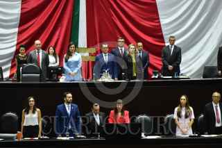 CIUDAD DE MÉXICO, 01SEPTIEMBRE2024.- Ricardo Monreal, diputado y coordinador de Morena es felicitado por sus compañeras de bancada al finalizar su intervención en la primera sesión ordinaria de la LXVI Legislatura de la Cámara de Diputados en la que se dio la declaracion de validez de la elección y declaración de Claudia Sheinbaum, como presidenta electa de México, y la declaratoria de publicidad al dictamen de reforma al Poder Judicial que será discutido el próximo martes. FOTO: MARIO JASSO/CUARTOSCURO.COM