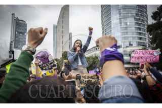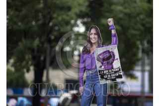 CIUDAD DE MÉXICO, 02SEPTIEMBRE2024.- Alessandra Rojo De la Vega acompañada de simpatizantes ofreció mitin en la Diana Cazadora cerrando la Avenida Reforma para hablar sobre la anulación de la elección en la alcaldía Cuauhtémoc por supuesta violencia de género. FOTO: ANDREA MURCIA /CUARTOSCURO.COM