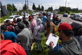 SAN ANTONIO LA ISLA, ESTADO DE MÉXICO, 02SEPTIEMBRE2024.- Taxistas que operan en los fraccionamientos San Dimas, La Isla, Valle del Nevado ubicados en San Antonio la Isla, realizaron una protesta a la entrada de estos conjuntos para exigir a las autoridades municipales y estatales llevar a cabo obras de bacheo en este municipio, ante las malas condiciones que tienen las vialidades, solicitaron firmas a los vecinos para poder realizar su petición. FOTO: CRISANTA ESPINOSA AGUILAR /CUARTOSCURO.COM