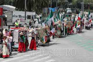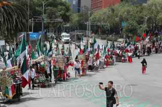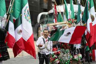 CIUDAD DE MÉXICO, 02SEPTIEMBRE2024.- Comerciantes de artículos patrios, como banderas y sombreros tricolores, arrancaron oficialmente su vendimia tolerada en el Centro, con un desfile que partió del Monumento a la Revolución rumbo al Zócalo. FOTO: MOISÉS PABLO/CUARTOSCURO.COM