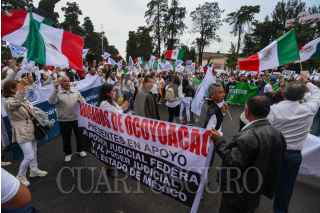 TOLUCA, ESTADO DE MÉXICO, 02SEPTIEMBRE2024.- Trabajadores del Poder Judicial Federal con sede en Toluca y estudiantes de Derecho de la UAEMÉX, marcharon en las calles de la capital mexiquense “Luz para la Justicia” en contra de la Reforma Laboral, como parte de todas las movilizaciones que se realizan en la República Mexicana. FOTO: CRISANTA ESPINOSA AGUILAR /CUARTOSCURO.COM