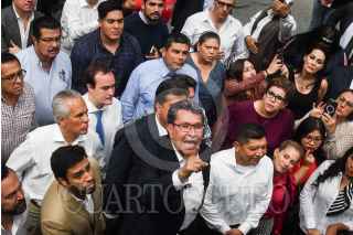 CIUDAD DE MÉXICO, 03SEPTIEMBRE2024.- Ricardo Monreal, diputado y coordinador de Morena, ofrece un mensaje la bancada de Morena y aliados previo a la sesión ordinaria que se llevará en la sede alterna "Sala de Armas" y en la que se contempla discutir la iniciativa de reforma al Poder Judicial. FOTO: MARIO JASSO/CUARTOSCURO.COM