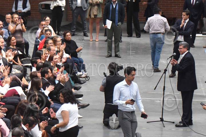 CIUDAD DE MÉXICO, 03SEPTIEMBRE2024.- Ricardo Monreal, diputado y coordinador del grupo parlamentario de Morena, ofrece un mensaje la bancada de Morena y aliados previo a la sesión ordinaria que se llevará a cabo en la sede alterna "Sala de Armas" y en la que se contempla discutir la iniciativa de reforma al Poder Judicial. FOTO: MARIO JASSO/CUARTOSCURO.COM