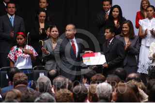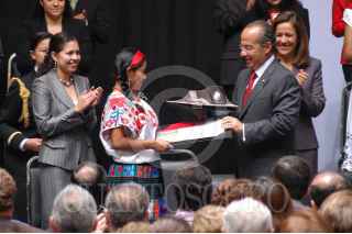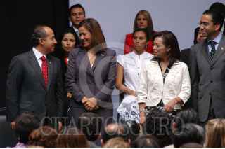 MÉXICO D.F. 27AGOSTO2007.-El presidente Felipe Calderón Hinojosa, encabezo la ceremonia del Premio Nacional de la Juventud 2006, esto en el patio central de Palacio Nacional.En la imágen una asistente hace gestos al momento en el presidente realiza su disurso durante al ceremonia. FOTO:GUILLERMO PEREA/CUARTOSCURO.COM