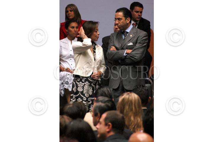 MÉXICO D.F. 27AGOSTO2007.-El presidente Felipe Calderón Hinojosa, encabezo la ceremonia del Premio Nacional de la Juventud 2006, esto en el patio central de Palacio Nacional.En la imágen una asistente hace gestos al momento en el presidente realiza su disurso durante al ceremonia. FOTO:GUILLERMO PEREA/CUARTOSCURO.COM