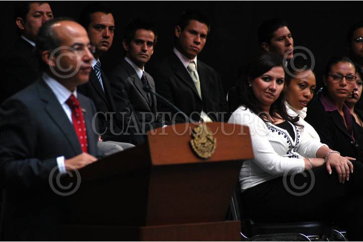 MÉXICO D.F. 27AGOSTO2007.-El presidente Felipe Calderón Hinojosa, encabezo la ceremonia del Premio Nacional de la Juventud 2006, esto en el patio central de Palacio Nacional.En la imágen una asistente hace gestos al momento en el presidente realiza su disurso durante al ceremonia. FOTO:GUILLERMO PEREA/CUARTOSCURO.COM