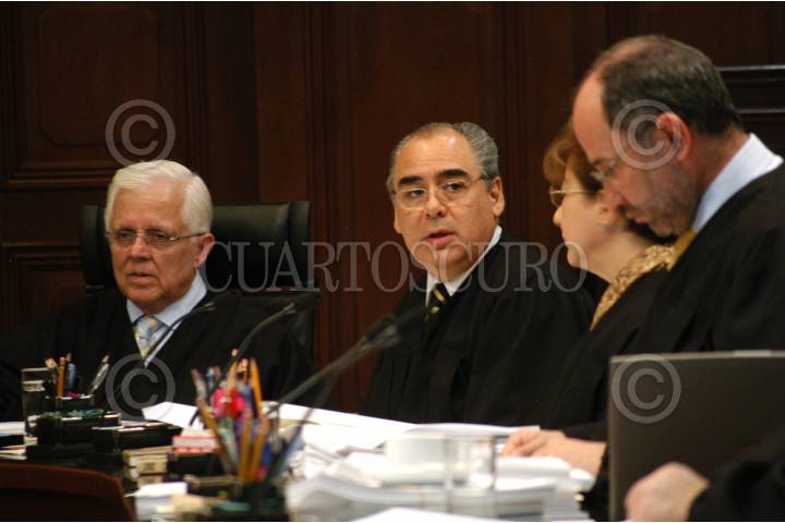 MÉXICO D.F. 27AGOSTO2007.-Los Magsitrados de Olga Sánchez Cordero, Sergio Armando Valls Hernández, y Mariano Azuela Güitrón, emiten su voto, durante la sesión donde se investiga el caso Oaxaca. FOTO: GUILLERMO PEREA/CUARTOSCURO.COM