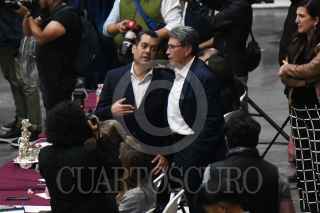 CIUDAD DE MÉXICO, 04SEPTIEMBRE2024.- Con 359 votos a favor y 135 en contra fue aprobada en lo general dictamen de la Comisión de Puntos Constitucionales, con proyecto de Decreto por el que se reforman, adicionan y derogan diversas disposiciones de la Constitución Política de los Estados Unidos Mexicanos, en materia de reforma del Poder Judicial. En la imagen, Ricardo Monreal, diputado y coordinador del grupo parlamentario Morena festeja junto a sus compañeros de bancada. FOTO: MARIO JASSO/CUARTOSCURO.COM