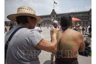 CIUDAD DE MÉXICO, 04SEPTIEMBRE2024.- Integrantes de la Montaña del Ajusco comienzan la jornada cultural “Por la patrimonialización del Maguey, pulque y pulquerías” donde buscan incentivar a las personas a la dignificación del Maguey en la plancha del Zócalo. FOTO: ANDREA MURCIA /CUARTOSCURO.COM