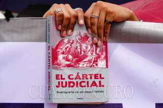 CIUDAD DE MÉXICO, 04SEPTIEMBRE2024.- Aspecto de libro, "El Cártel Judicial, tomado durante la protesta a favor de la Reforma Judicial, frente a la Rectoría de la Universidad Autónoma de México. FOTOS: ROGELIO MORALES /CUARTOSCURO.COM