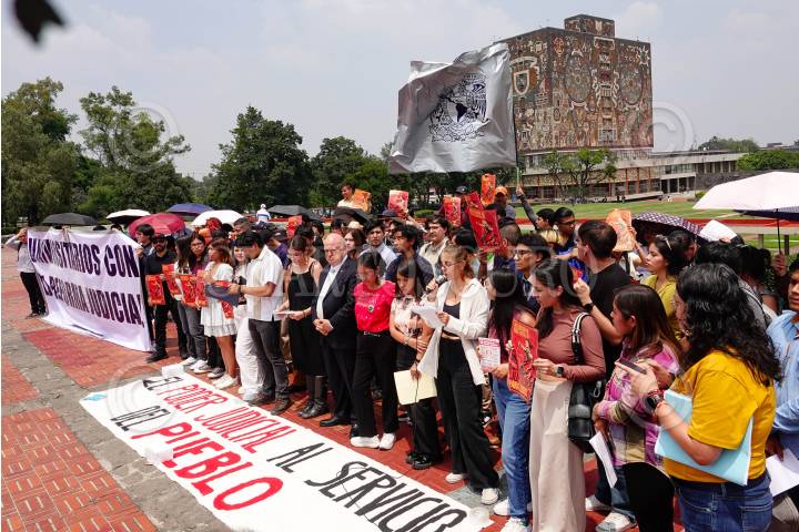 CIUDAD DE MÉXICO, 04SEPTIEMBRE2024.- Integrantes de la comunidad universitaria realizaron una protesta a favor de la Reforma Judicial, frente a la Rectoría de la Universidad Autónoma de México. FOTOS: ROGELIO MORALES /CUARTOSCURO.COM
