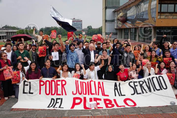 CIUDAD DE MÉXICO, 04SEPTIEMBRE2024.- Integrantes de la comunidad universitaria realizaron una protesta a favor de la Reforma Judicial, frente a la Rectoría de la Universidad Autónoma de México. FOTOS: ROGELIO MORALES /CUARTOSCURO.COM