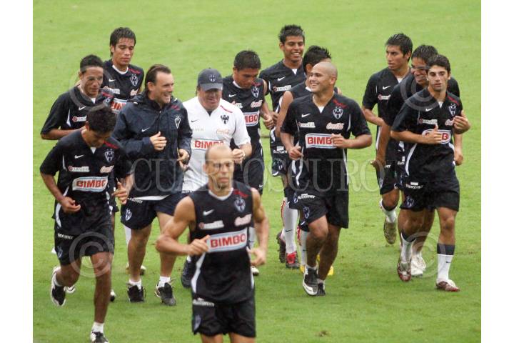 SANTIAGO, NUEVO LEON 27AGOSTO2007.-Entrenamiento de los Rayados de Monterrey hoy por la mañana en las instalaciones del barrial, el tècnico Miguel Herrera, trotò junto con el plantel. FOTO: PEDRO KRISTIAN LOPEZ/CUARTOSCURO.COM