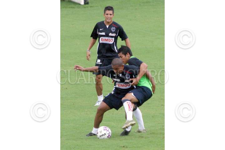 SANTIAGO, NUEVO LEON 27AGOSTO2007.-Entrenamiento de los Rayados de Monterrey hoy por la mañana en las instalaciones del barrial, el tècnico Miguel Herrera, trotò junto con el plantel. FOTO: PEDRO KRISTIAN LOPEZ/CUARTOSCURO.COM