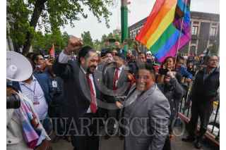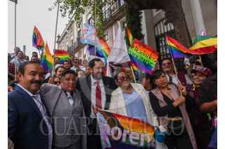 TOLUCA, ESTADO DE MÉXICO, 04SEPTIEMBRE2024.- Integrantes de la comunidad LGBTTTIQA+ celebraron la llegada de Meme Navarro como diputade de la LXII Legislatura local, convirtiéndose en la primer persona no binaria electa para este cargo por parte de MORENA, durante el festejo estuvo presente Francisco Vázquez, coordinador morenista en el Congreso local. FOTO: CRISANTA ESPINOSA AGUILAR /CUARTOSCURO.COM