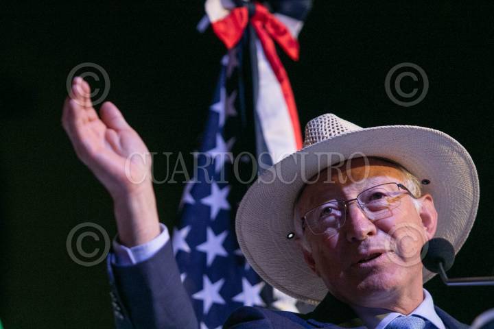 CIUDAD DE MÉXICO, 04SEPTIEMBRE2024.- Ken Salazar, embajador de Estados Unidos en México, destaco los beneficios del T-MEC y de los proyectos económicos que impulsar Estados Unidos y México durante su ponencia en la reunión binacional del American Society of Mexico. FOTO: MOISÉS PABLO/CUARTOSCURO.COM