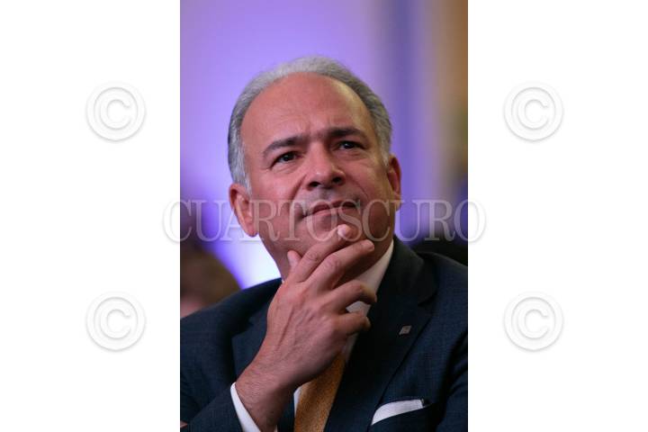 CIUDAD DE MÉXICO, 04SEPTIEMBRE2024.- Francisco Garza, presidente de General Motors México, escucha atento las ponencias de la reunión binacional del American Society of Mexico. FOTO: MOISÉS PABLO/CUARTOSCURO.COM
