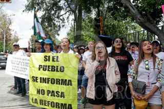 PUEBLA, PUEBLA, 4SEPTIEMBRE2024.- Estudiantes de la Universidad Iberoamericana de Puebla se manifestaron en contra de la aprobación de la Reforma Judicial en el bulevar del Niño Poblano. FOTO: MIREYA NOVO/ CUARTOSCURO.COM