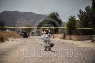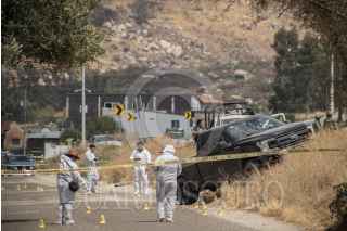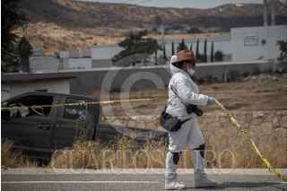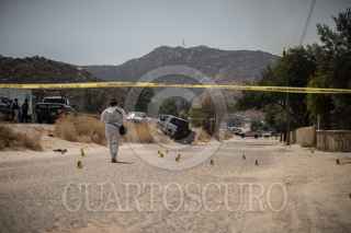TECATE, BAJA CALIFORNIA, 04SEPTIEMBRE2024.- Un policía municipal de Tecate falleció en un ataque armado en la carretera libre Tecate-Mexicali, a la altura del fraccionamiento San Pablo. El agente, identificado como Humberto Cota Contreras, viajaba en un auto particular, un pick up Ford color negro, cuando fue emboscado por delincuentes. En la zona del hecho, cercana a la escuela primaria, se localizaron más de 20 casquillos percutidos. De manera extraoficial se dio a conocer que la víctima se desempeñaba como subcomandante de la Dirección de Seguridad Ciudadana y Tránsito Municipal (DSCTM). “La Mtra. Elsa Macías Vázquez, Directora de Seguridad Ciudadana y Tránsito Municipal de Tecate, así como cada uno de las y los elementos que laboran en esta Dirección, lamentamos el sensible fallecimiento de nuestro hermano de Sangre Azul HUMBERTO COTA CONTRERAS, nos unimos a la pena que embarga a toda su familia y amistades, esperando que sus corazones encuentren el consuelo necesario para dolor”, dio a conocer la DSCTM. Elementos de la Guardia Nacional y el Ejército Mexicano resguardaron la zona mientras la Fiscalía General del Estado (FGE) realizaba el procesamiento de la escena. La agresión armada se dio a horas de que localizaron una presunta narcomanta en el parque de la colonia Juárez, con mensajes contra agentes municipales. FOTO: CHRIS NOYOLA/ CUARTOSCURO.COM