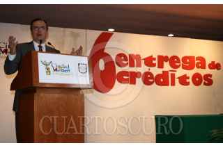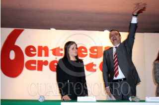 MEXÍCO. D.F. 27AGOSTO2007.-El jefe de gobierno capiatlino Marcelo Ebrad durante la sexta entrega de cretidos para el auto empleo, realizado en el deportivo 18 de marzo. en la imagen es acompañado de la Secretaria de Desarrollo Economico Laura Velázquez Alzúa. FOTO:RICARDO CASTELAN CRUZ/CUARTOSCURO.COM