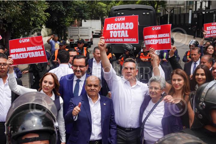 CIUDAD DE MÉXICO, 05SEPTIEMBRE2024.- Los senadores priístas Manuel Añorve, Alejandro Moreno Cárdenas y Carolina Viggiano, junto con la vocera de los trabajadores del Poder Judicial, Patricia Aguayo, durante las protestas de los trabajadores de este organismo que se han congregado afuera de la Cámara de Senadores para impedir se discuta la ratificación de la Reforma al Poder Judicial, la cual se concreto el dia de ayer Diputados. GRACIELA LÓPEZ/CUARTOSCURO.COM