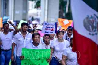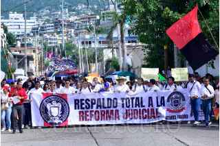 ACAPULCO, GUERRERO, 05SEPTIEMBRE2024.- Estudiantes de la Universidad Autónoma de Guerrero (UAG) marcharon por diferentes calles del puerto de Acapulco en apoyo a la Reforma al Poder Judicial del presidente Andrés Manuel López Obrador, durante la Gritaron consignas en apoyo al presidente y a favor de la Reforma al Poder Judicial, la marcha terminó con un mitin en el asta bandera del puerto. FOTO: CARLOS ALBERTO CARBAJAL/CUARTOSCURO.COM