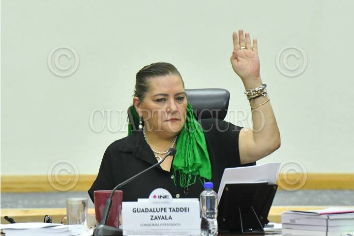 CIUDAD DE MÉXICO, 05SEPTIEMBRE2024.- Guadalupe Taddei, consejera presidenta del INE, emite su voto durante la sesión extraordinaria del Consejo General del Instituto Nacional Electoral (INE) en la que se determinará la anulación de la votación en la alcaldía Álvaro Obregón en donde presuntamente se rebasaron los topes de gasto de campaña por parte de Joaquín López Casarín candidato por Morena, PVEM y PT. FOTO: MARIO JASSO/CUARTOSCURO.COM