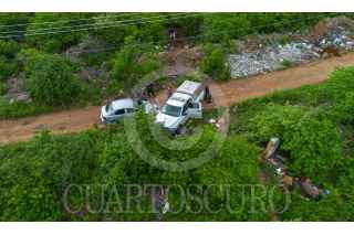 CULIACÁN, SINALOA, 05SEPTIEMBRE2024.- Durante la tarde de este jueves 5 de septiembre, la Comisión Estatal de Búsqueda para Personas en Sinaloa confirmó el hallazgo de cinco cuerpos sepultados clandestinamente a escasos centímetros de la superficie, cerca de una brecha que conecta los fraccionamientos Vinoramas y Punta Azul, al sur de la ciudad. Algunos restos están en estado óseo, otros calcinados y algunos con pocos días de haber sido asesinados, todos cubiertos con tierra, escombro y basura en una zona cercana a la construcción de una plaza comercial en el sector sur poniente. Debido a las condiciones de los cuerpos, no se pudo determinar características ni sexo, y las labores de exhumación podrían suspenderse esta tarde noche por falta de luz natural. FOTO: JOSÉ BETANZOS/CUARTOSCURO.COM