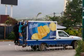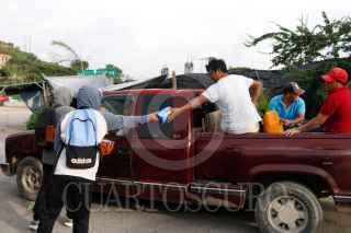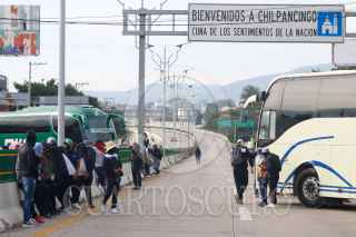 CHILPANCINGO, GUERRERO, 05SEPTIEMBRE2024.- Estudiantes de la Normal Rural de Ayotzinapa vaciaron dos camiones distribuidores de pan Bimbo y regalaron la mercancía entre los automovilistas que circulaban sobre la Autopista del Sol, en la entrada sur de la capital del estado, también retuvieron por lo menos cuatro camionetas de la Secretaría del Bienestar, del Gobierno de la República. Alrededor de las 16:00 horas del jueves 5 de septiembre, estudiantes de la Normal Rural de Ayotzinapa llegaron a la parte sur de la capital del estado a bordo de varios autobuses, los que utilizaron para interrumpir la circulación en el punto conocido como El Parador del Marqués. Detectaron dos camiones distribuidores de pan Bimbo, le marcaron el alto a los conductores y posteriormente les ordenaron que abrieran las cajas de carga. Acto seguido bajaron las charolas con mercancía, mismas que comenzaron a regalar entre los automovilistas, que se vieron sorprendidos por dicha acción. FOTO: DASSAEV TÉLLEZ ADAME/CUARTOSCURO.COM
