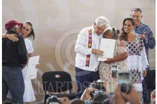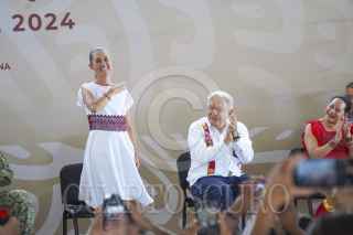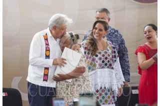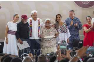 SOLIDARIDAD, QUINTANA ROO, 06SEPTIEMBRE2024.-Claudia Sheinbaum, presidenta electa de México; Andrés Manuel López Obrador, presidente de México; Mara Lezama, gobernadora de Quintana Roo; encabezaron la entrega de escrituras a vecinos de la colonia Colosio de Playa del Carmen. FOTO: ELIZABETH RUIZ/CUARTOSCURO.COM