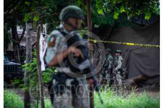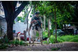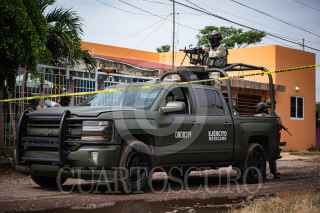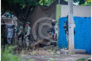 CULIACÁN, SINALOA , 07SEPTIEMBRE2024. Elementos del Ejército Mexicano y de la Guardia Nacional aseguraron y mantienen en resguardo un inmueble en la colonia Miguel de la Madrid en Culiacán. El operativo se lleva a cabo en la calle Mina de Tayoltita, entre Huichol y Lacandones con la participación de cuatro unidades oficiales. Hasta el momento, se desconoce si hay personas detenidas o si se han encontrado objetos ilícitos en el inmueble. Se presume que los elementos castrenses esperan una orden de cateo para que la Fiscalía General de la República pueda ingresar y realizar la inspección correspondiente. FOTO: JOSÉ BETANZOS/CUARTOSCURO.COM