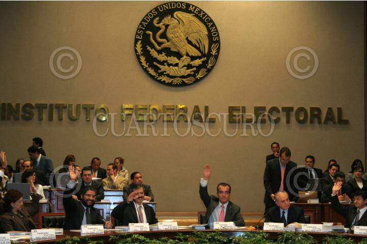 MÉXICO, D.F.30AGOSTO2007.- Los consejeros electorales del IFE Lourdes del Refugio y Virgilio Andrade durante la sesión extraordinaria en dicha institución. FOTO: PAOLA HIDALGO/CUARTOSCURO.COM