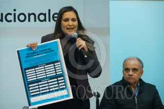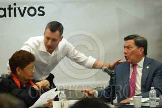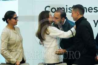 CIUDAD DE MÉXICO, 08SEPTIEMBRE2024.- Los senadores Carolina Viggiano y Marko Cortés se saludaron durante la Primera Reunión de Comisiones Unidas de Puntos Constitucionales y de Estudios Legislativos en el Senado de la República. FOTO: GRACIELA LÓPEZ /CUARTOSCURO.COM