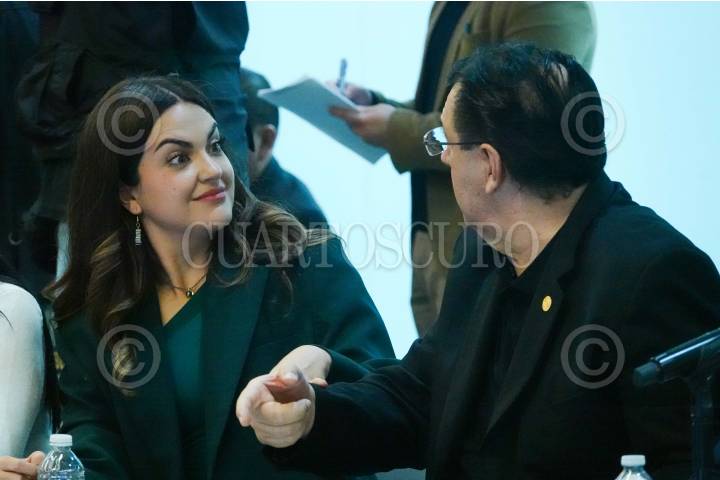 CIUDAD DE MÉXICO, 08SEPTIEMBRE2024.- Los senadores Andrea Chávez y Ricardo González Yáñez conversaron durante la Primera Reunión de Comisiones Unidas de Puntos Constitucionales y de Estudios Legislativos en el Senado de la República. FOTO: GRACIELA LÓPEZ /CUARTOSCURO.COM