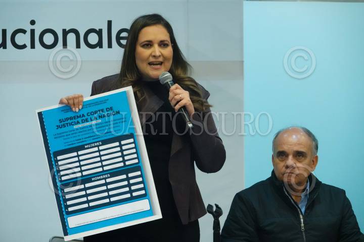 CIUDAD DE MÉXICO, 08SEPTIEMBRE2024.- La senadora Cynthia Iliana López Castro mostró una lámina sobre la Reforma al Poder Judicial durante la Primera Reunión Ordinaria de Comisiones Unidas de Puntos Constitucionales y de Estados Legislativos. FOTO: GRACIELA LÓPEZ /CUARTOSCURO.COM