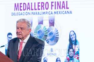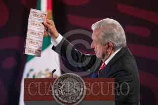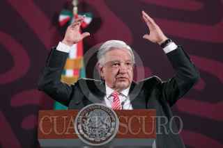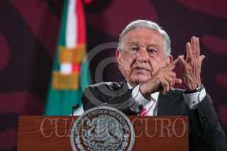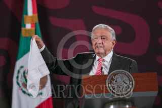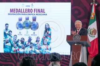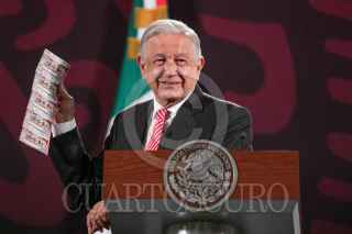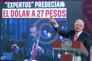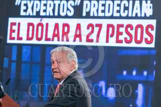 CIUDAD DE MÉXICO, 09SEPTIEMBRE2024.- Andrés Manuel López Obrador, Presidente de México, mostró un vídeo titulado "Expertos predecían el dólar a 27 pesos", en el que vaticinaba una devaluación del peso al inicio de su sexenio, durante la mañanera. FOTO: MOISÉS PABLO/CUARTOSCURO.COM