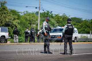 CULIACÁN, SINALOA, 09SEPTIEMBRE2024.- Una serie de enfrentamientos se dio la mañana de este lunes al sur de la ciudad de Culiacán, a la altura del Splash Club. El mayor enfrentamiento tuvo su epicentro en la sindicatura de Costa Rica, donde, tras el enfrentamiento, se decomisaron poco más de 10 vehículos con múltiples impactos de bala. En el lugar, efectivos de la SEDENA, la policía estatal y personal de tránsito municipal retiraron los vehículos con ayuda de grúas para liberar el acceso. FOTO: JOSÉ BETANZOS/CUARTOSCURO.COM