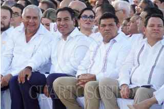 CHETUMAL, QUINTANA ROO, 09SEPTIEMBRE2024.- Las gobernadoras Lorena Cuéllar Cisneros, gobernadora de Tlaxcala, y Layda Sansores, gobernadora de Campeche, durante el Segundo Informe de Mara Lezama, mandataria de Quintana Roo. FOTO: ELIZABETH RUIZ/CUARTOSCURO.COM