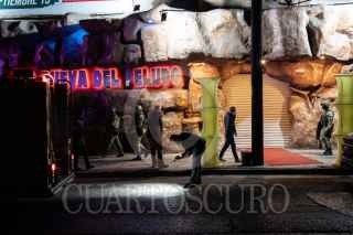 TIJUANA, BAJA CALIFORNIA, 10SEPTIEMBRE2024.- Nuevamente, el bar La Cueva del Peludo fue escenario de un hecho violento. Aproximadamente a la 1:50 a.m. de este martes fue baleado un guardia de seguridad del establecimiento ubicado en el bulevar Díaz Ordaz. Paramédicos atendieron a la víctima, que resultó con heridas en el brazo derecho, para posteriormente ser trasladado a un hospital. De acuerdo a los primeros reportes, los presuntos responsables viajaban en un auto Honda Civic, color plateado, con los vidrios polarizados. El sujeto que perpetró la agresión descendió del carro descrito y realizó detonaciones para huir corriendo hacia la calle Charros hasta perderse de vista. Frente al centro nocturno, cuya puerta fue cerrada tras el ataque, fueron localizados múltiples casquillos percutidos y la zona fue acordonada por las autoridades. Una gran cantidad de agentes de la Policía Municipal, Guardia Nacional y el Ejército acudieron a la zona, así como elementos de Bomberos y la Fiscalía General del Estado. FOTO: OMAR MARTÍNEZ/ CUARTOSCURO.COM
