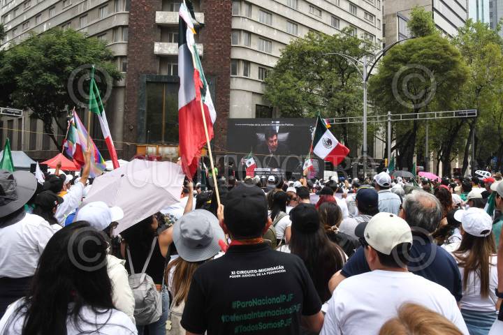 CIUDAD DE MÉXICO, 10SEPTIEMBRE2024.- Trabajadores del Poder Judicial que continúan en protesta al exterior del Senado de la República observan la sesión ordinaria de este martes en donde se prevé se de primera lectura a la Reforma Judicial luego de ser aprobada en las comisiones de Puntos Constitucionales y Estudios Legislativos de la Cámara Alta. FOTO: MARIO JASSO/CUARTOSCURO.COM