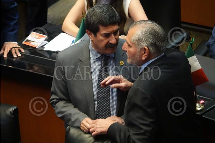 CIUDAD DE MÉXICO, 10SEPTIEMBRE2024.- Los senadores de Morena; Javier Corral y Adán Augusto López, durante la sesión en la cual se le dará primera lectura a la Reforma del Poder de Judicial. FOTO: GRACIELA LÓPEZ/CUARTOSCURO.COM