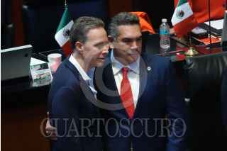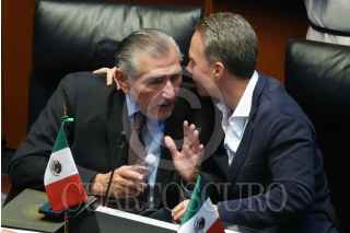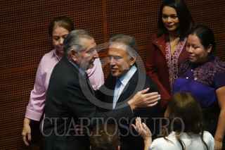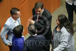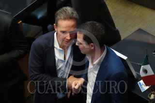 CIUDAD DE MÉXICO, 10SEPTIEMBRE2024.- Gerardo Fernández Noroña, presidente de la mesa directiva del Senado, conversa con Clemente Castañeda, coordinador de los senadores de Movimiento Ciudadano, durante la sesión en la que se le dio primera lectura a la Reforma del Poder Judicial. FOTO: GRACIELA LÓPEZ /CUARTOSCURO.COM
