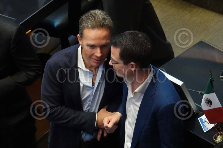 CIUDAD DE MÉXICO, 10SEPTIEMBRE2024.- Los senadores Manuel Velasco (Partido Verde), y Ricardo Anaya (PAN), conversaron durante la Sesión Ordinaria en el Senado de la República. FOTO: GRACIELA LÓPEZ /CUARTOSCURO.COM