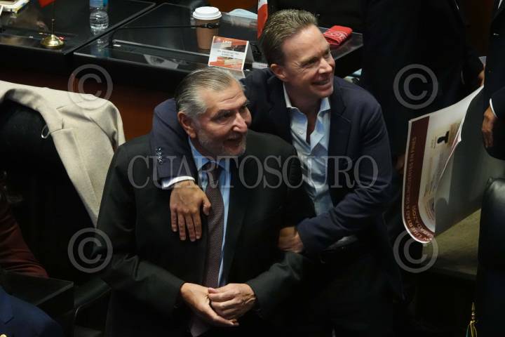 CIUDAD DE MÉXICO, 10SEPTIEMBRE2024.- Los senadores Adán Augusto (Morena) y Manuel Velasco (Partido Verde), durante la Sesión Ordinaria en el Senado de la República. FOTO: GRACIELA LÓPEZ /CUARTOSCURO.COM