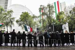 CIUDAD DE MÉXICO, 10SEPTIEMBRE2024.- Trabajadores del Poder Judicial continúan en protesta al exterior del Senado de la República, en donde comenzó la discusión de la reforma judicial durante la sesión ordinaria de este martes. FOTO: MARIO JASSO/CUARTOSCURO.COM